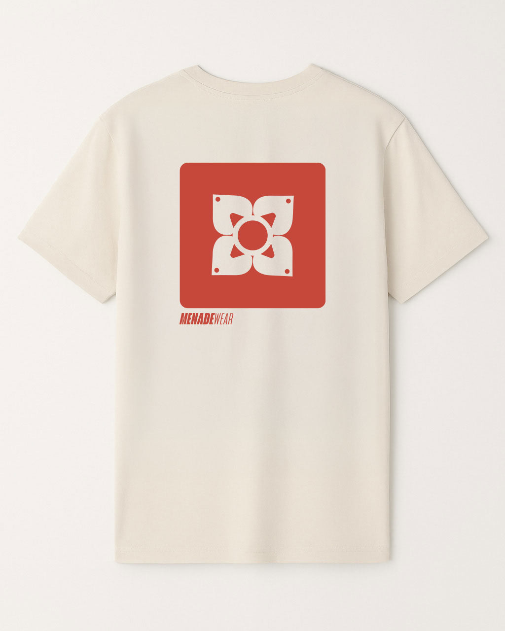 On the front, a small MENADE logo keeps it minimal so the focus stays on the back artwork. The soft off-white fabric makes it easy to pair with anything, from denim to relaxed tailoring.