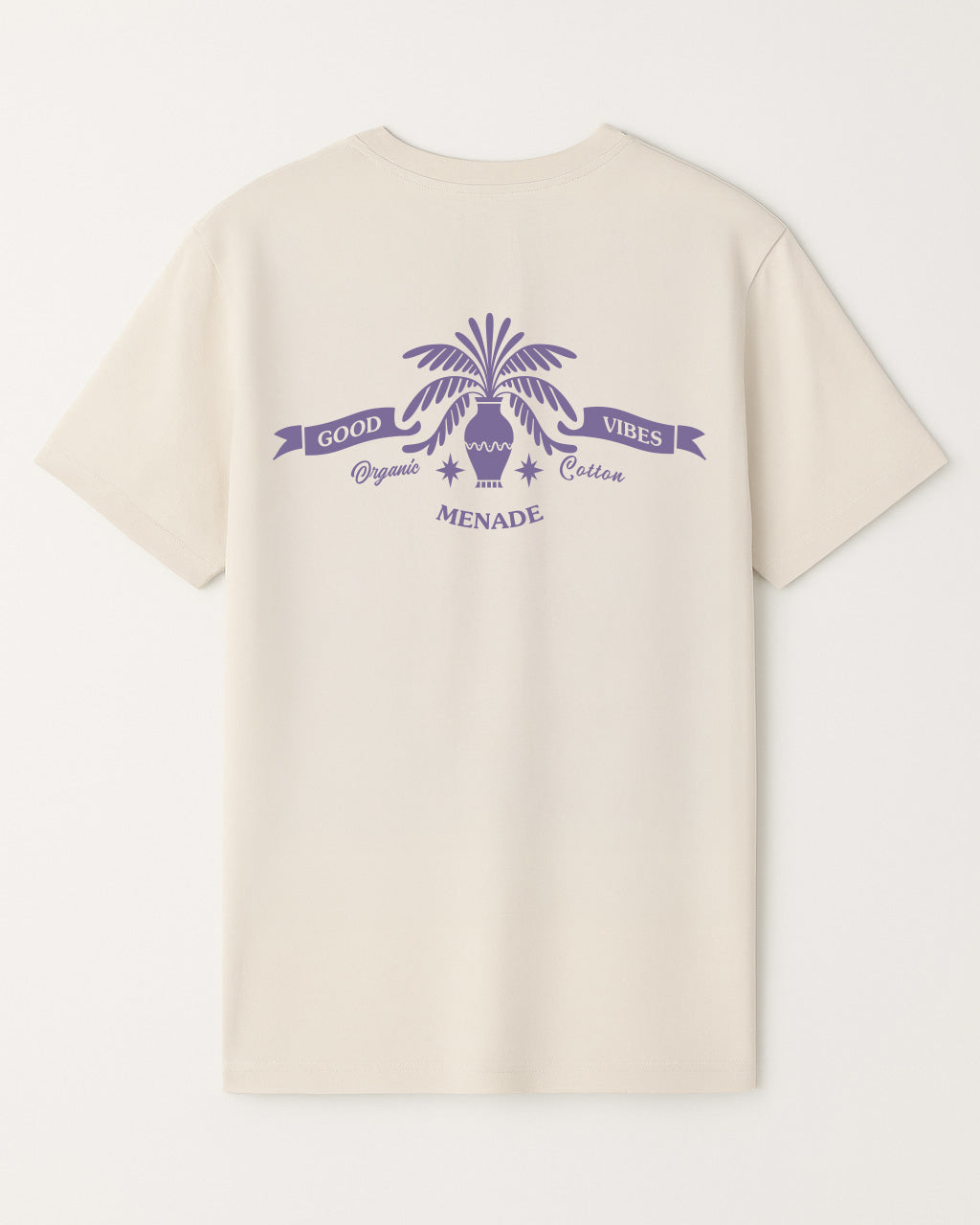 Bring a little sunshine everywhere you go. The Good Vibes Tee combines Menade’s minimalist style with a playful palm-tree emblem and banner reading “Good Vibes – Organic Cotton”. A small chest print at the front and a larger artwork on the back keep the look clean but eye-catching.